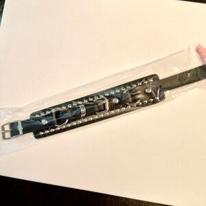 This is a set of THREE 3 Faux black leather bracelets for men or women. In first photo.