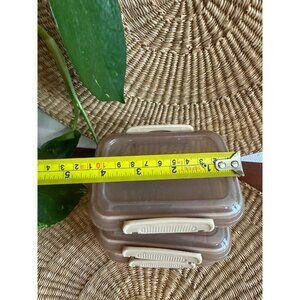 This trio of brown plastic containers features secure cream-colored snap locks for airtight food storage. Each container holds 5.2 fl oz (155 ml), made from durable polypropylene and freezer-safe. Made in Jiangmen, China. Great for snacks, sauces, or meal prepping in small portions.