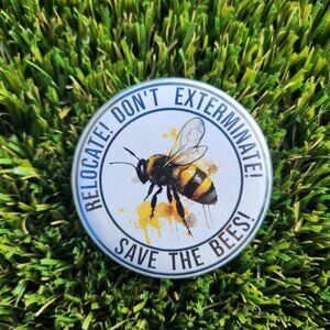 Each pin purchased helps pay for equipment to rescue honeybees from community spaces, donate hives to public gardens and provide pollinator education programs. Thank you for your support.