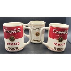 Set of 3 Campbell's Tomato Soup Can Coffee Mugs - Vintage Tea Cups - 3.75" Tall