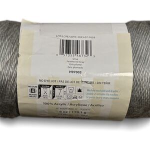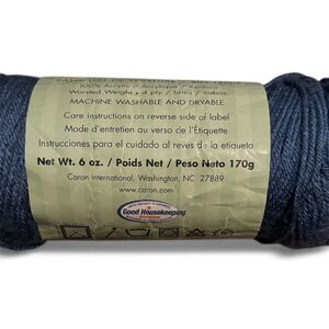 Set of 3 Caron Simply Soft Yarn in colors Feathered Grey, Country Blue, and Charcoal. 100% Acrylic and medium weight (4). These are partial skeins. Feathered Gray has 5.6oz out of 6oz remaining. Country Blue has 5.4oz out of 6oz remaining. Charcoal has 4.8oz out of 5oz remaining. Plenty remaining to make a wonderful project!