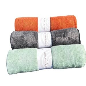 Set of 3 Cozy Orange, Green, and Gray Throw Blankets