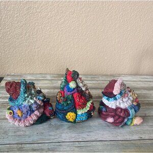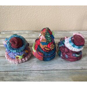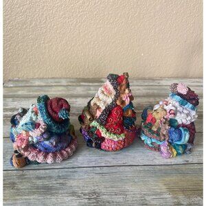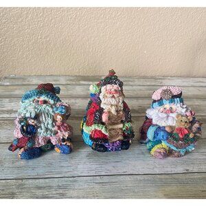 Set of 3 Crinkle Claus Figurines Crinkle Cousin Dolls Teddy & Top Spin Santa 90s