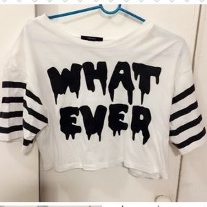 Knit Material. Hand Wash Cold. 2 White Color Crop Top are from Forever21, the black one is from Yesstyle. Really Cute, comfortable and boxy a bit. Worn one time. Package Content: 3 crop tops. NO TRADE- PRICE FIRM