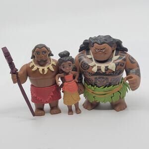 Set of 3 Disney Princess Moana Figures Figurines - Princess Moana, Maui the Demigod and Chief Tui . Pre-owned, good shape - please see photos for details. Height from 3 1/8" to 4". Weight 6.5oz (does not include shipping materials). Disney Hasbro @2016
