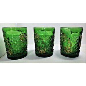 Set of 3 EAPG Riverside Glass Croesus Tumblers Green/Gold McKee c1890s