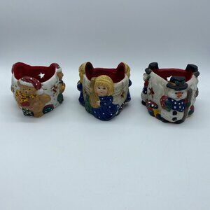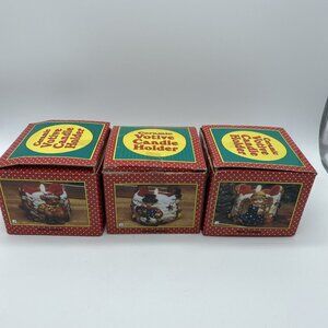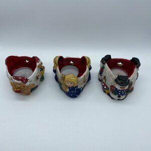 Set of 3 Figures Candle Holder Snowman Angels Bears Christmas Votive In Box
