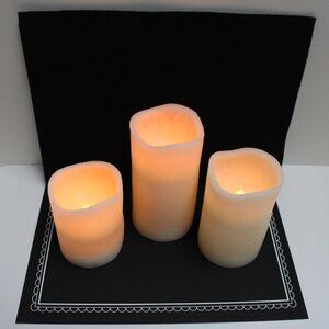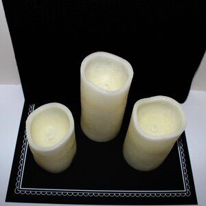 Set of 3 Flameless Pillar Candles Ivory Flickering Textured Battery Operated
