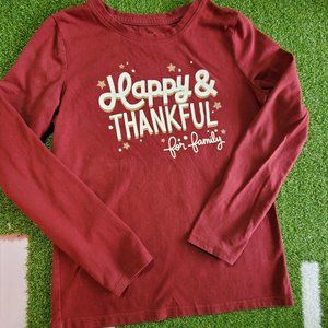 Details: long sleeve, lightweight, "Happy & Thankful for Family"