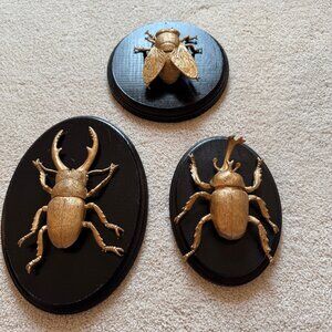 This set of 3 Entomology Plaques adds a bit of visual interest to any space. With a classic antique gold finish, the plaques feature a fly and two insects. The plaques are an elegant addition in any room, from the kitchen to the living room — perfect for Halloween or all year round!