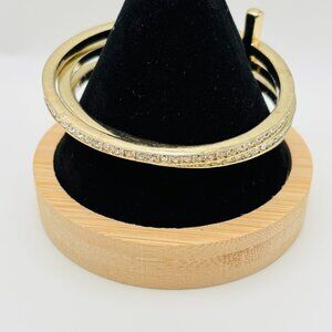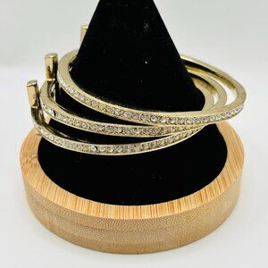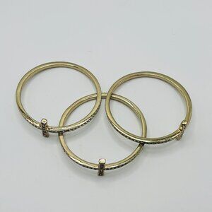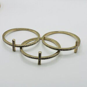 Set of 3 Gold Tone Cross Bangles Rhinestone Crystal Stackable Bracelets Religiou