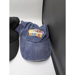 - Fun 'Positive Energy' embroidered design on the soft navy cap (preloved)