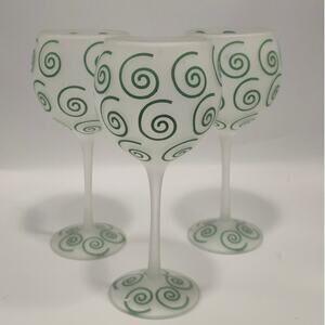 Set of 3 Green Swirl Frosted Wine Glasses with Shelf wear and Flaws See Pics
