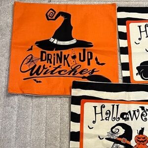 Set of 3 Halloween Zip Decorative Throw Pillow Covers Halloween Drink Up Witches
