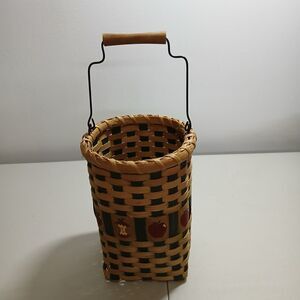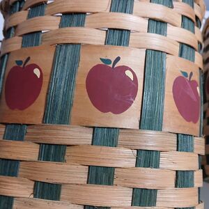 Set of 3 Hand Woven Rattan Wicker Apple Themed Baskets with Wood & Metal Handles