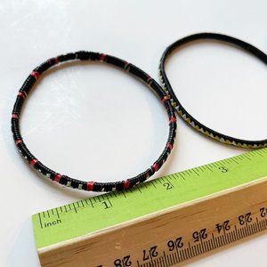 Bracelets are irregular shaped circles due to being handmade
