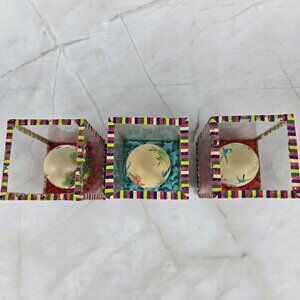Set of 3 Handpainted Eggs in Individual Boxes Asian Design Hand Painted Vintage