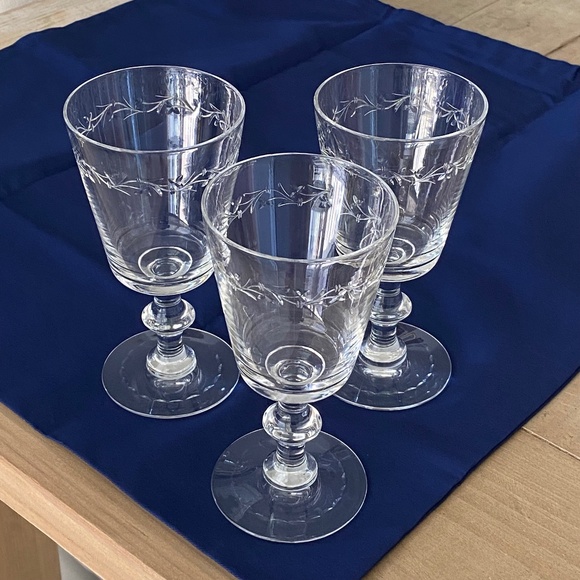 Set of 3 Crystal Glasses Patricia Water Goblets or Wine Glasses by Hawkes.