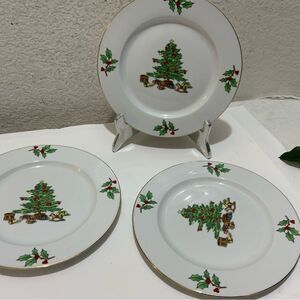 Set of 3 Holiday Christmas salad Plates Meiwa "Home For the Holidays" Tree  G9