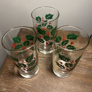 Set of 3 Holly‎ & Berry Holiday glasses, cups
