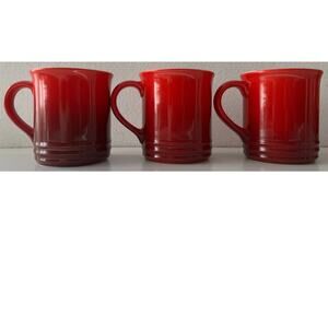 Set of 3 Le Creuset Cherry Red Cerise Coffee/Tea Cup Stoneware Mug
