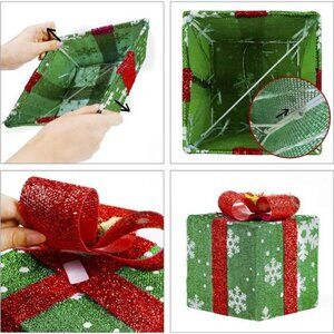 🧿Set of 3 Christmas gift boxes includes: Small, 7" sq. x 8.3" H, Medium, 7.5" sq. x 9" H, Large, 8.7" sq. x 10.2" H. Simple installation, foldable, space-saving and can be reused every year.