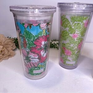Set of 3 Lilly Pulitzer Ocean Floral Print Plastic Tumblers With Lids BPA Free