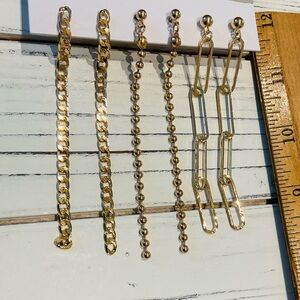 Set of 3 Linear Dangle Drop Gold Earrings