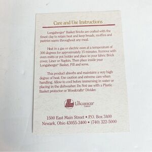 Warming brick is heated in a conventional oven and then placed in a basket to keep items warm