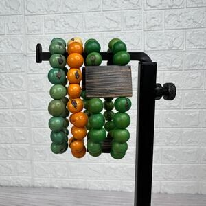 Set of 3 Lucky Wooden Beads Bracelet Orange Green Elastic Fashion Protection