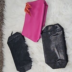 Set of 3- MAC and tarte black makeup bags, and unbranded pink makeup bag