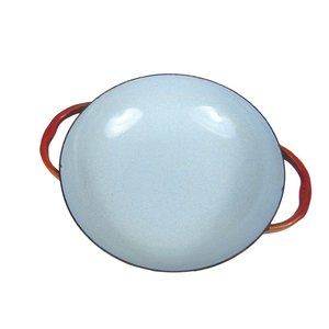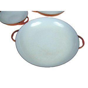 Set of 3 MCM Enamel Nesting Sauté Pans Orange Mid Century Modern CHIPS