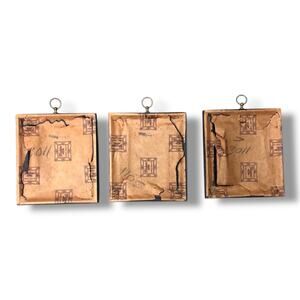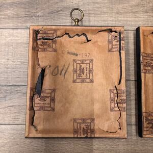 Good vintage condition with some wear to frames - some peeling on gold trim, tarnish on brass rings, ripped paper on back - prints appear to be in excellent condition