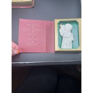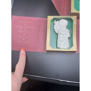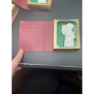 This beautiful MJ Hummel Christmas Ornament is a must-have for any collector. Made of porcelain, it features a stunning white color and depicts angels in a festival of harmony. This vintage ornament was manufactured in 1992 in Germany and is part of the Hummel product line. The set includes three ornaments and is perfect for the holiday season. The ornament is an ideal addition to any collection and will make a great gift.