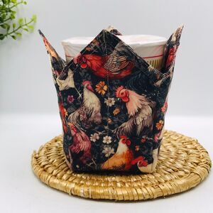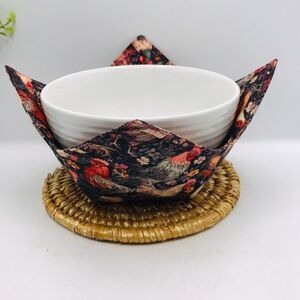 These reversible cozies are great for hot or cold items. Put the bowl inside cozy to microwave your food. Remove by lifting by tips of the cozy. A wonderful way to protect your hands, tabletops, and countertops. Also can be used to eat cold food like ice cream to keep your hands from getting cold.