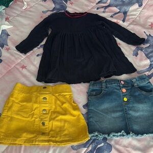Charming navy dress paired with a vibrant yellow skirt and a stylish denim skirt. Perfect for versatile styling. Excellent condition