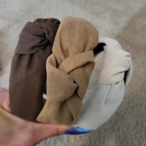 A beautiful set of 3 neutral tone headbands in a soft suede material - I find I'm just more drawn to colorful headbands so I have not worn these