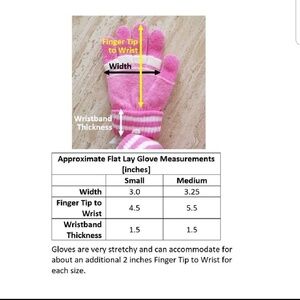Gloves are very stretchy and can fit various sizes from child to adult ladies
