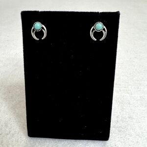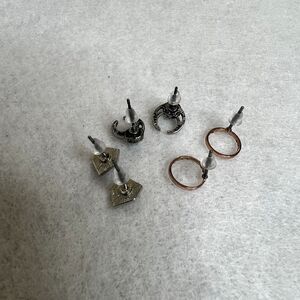 Features: one rose gold circles, one silver horseshoes with blue gemstone, one asymmetrical diamonds, studs with push backs