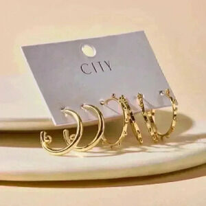 Set of 3 Pairs of Flat Bar Hoop Earrings