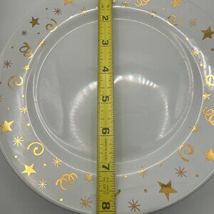 Set of 3 Pampered Chef Celebration white gold stars swirls 8” dessert plates