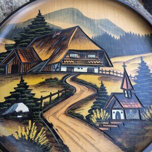 Very unique set of three exceptionally beautiful hand-painted decorative wall plates. Each depicting a different German Alps mountain scene, and each plate is numbered with a unique identifier and date on the back.