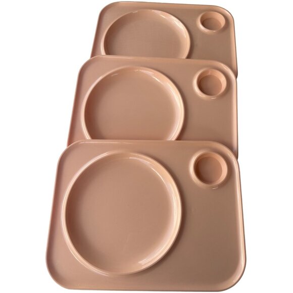 Set of 3 Plastic Lap Food Trays Tan w/Drink Holder 13.5" Length (BRAND UNKNOWN)