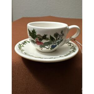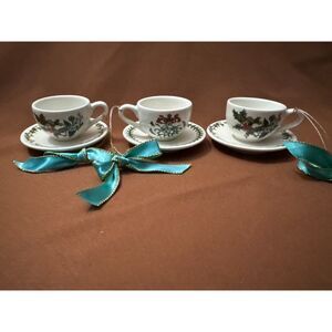 Set of 3 Portmeirion Holly and Ivy Tea Cup w/ Saucer Ornaments