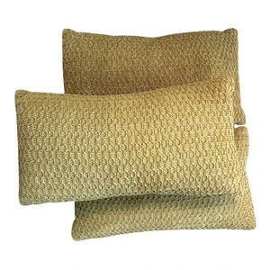 Set of (3) Pottery Barn Faux Natural Fiber Honeycomb Indoor / Outdoor Lumbar Pillow Beige Tan