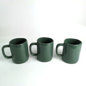 Set of 3 Rae Dunn TREE-RIFIC Summer Camping Coffee Tea Mugs NEW Green Ceramic