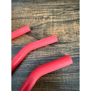 Durable reusable plastic straws with a bent design for comfortable sipping. Bright red color, perfect as replacements for tumblers, cups, or kids’ drinkware.