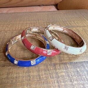 Set of 3 Red, White & Blue Enameled Bangles Hinged Patriotic Clamper Bracelet