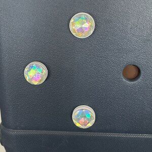 These are my 3D printed Bogg Hole Filler Charms. You can choose from Faux AB Rhinestone or Pearls.
