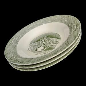 Set of 3 Royal Ironstone The Old Curiosity Shop Green Soup Bowls 8.25" USA